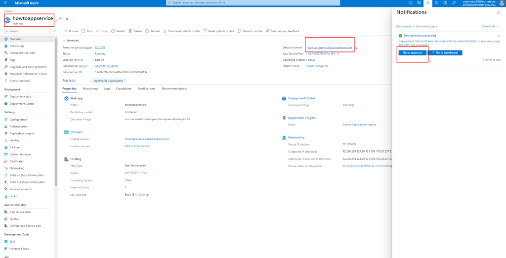 App servisimizin dağıtılması tahmini olarak 10 dakikayı aşan sürelerde gerçekleşebilir. Dağıtım tamamlandıktan sonra linke tıklayarak sayfamıza erişebiliriz